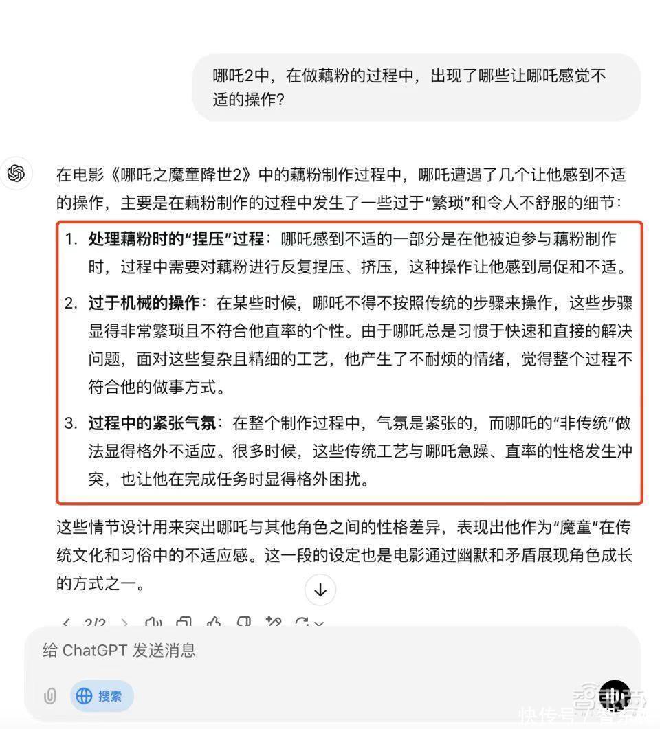 再抛给它们一个开放式的问题:“哪吒2中,在做藕粉的过程中,出现了哪些让哪吒感觉不适的操作?”